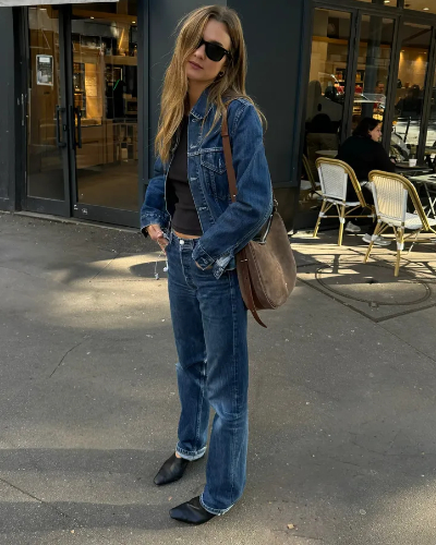 Denim on denim—a trend French girls wear with ease. The secret lies in contrasting washes and emphasizing the shoes.