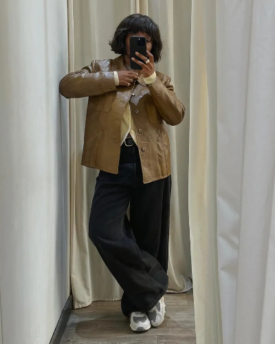 Leather jackets are experiencing a renaissance: this season's focus isn't classic biker styles, but buttery yellow and taupe shades. The perfect styling trick? Pair with lightweight knitwear and black wide-leg jeans for color contrast.