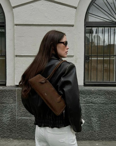 Compact yet expressive, the sausage bag fits perfectly into the late ’90s aesthetic, which blends practicality with ironic chic. Its narrow, elongated shape visually lengthens the silhouette, while soft materials add a relaxed, comfortable vibe to any look.