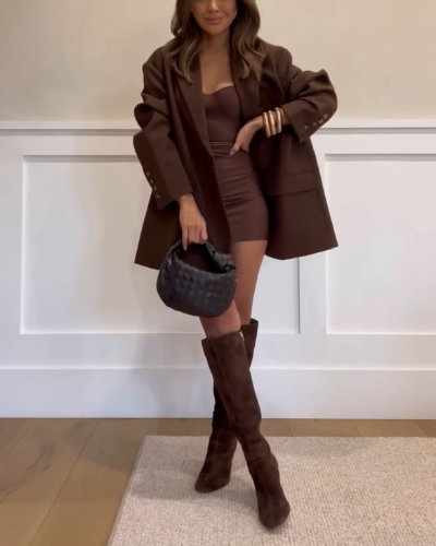 What makes brown suede knee-highs so special is their transformative power. Throw them on with your favorite jeans, and your casual look instantly feels polished. Style them with skirts, tailored shorts, or even a simple oversized sweater, and they add a sophisticated, editorial flair—effortlessly chic without appearing overdone.