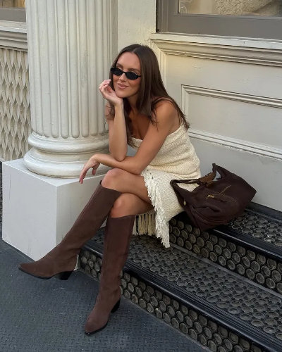 In this article we are showing you how to wear knee-high brown suede boots this fall 2025.