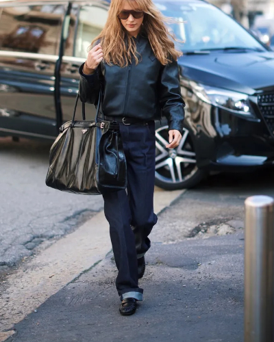 The off-duty wardrobes of models have always served as a source of inspiration for street style. During Milan Fashion Week, the trend toward ultra-loose, wide-leg jeans has been especially noticeable. These looks are defined by their practicality and comfort: oversized tote bags, comfortable flat shoes, and wide-leg jeans that are easy to slip on and off during a packed show schedule. While Italian fashion has traditionally leaned toward more tailored silhouettes and slim trousers, the international crowd has brought its love for oversized fits to Milan. These jeans are versatile and ideal for long commutes between cities during fashion month.