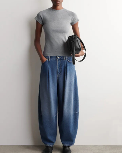 While the 1990s were characterized by sharp, angular shapes, the 2020s have ushered in a trend for rounded, sculptural silhouettes. Barrel-cut jeans feature a relaxed fit through the hips and thighs with tapered legs at the ankle, creating a shape reminiscent of a horseshoe or barrel. This cut adds architectural volume to outfits while remaining comfortable to wear. These jeans look particularly striking when paired with fitted tops, creating a balanced proportion. They have become a favorite among fashion editors and trendsetters for their ability to elevate even the most basic wardrobe.