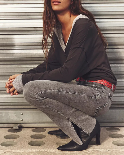 Jeans with slits at the bottom hem represent an evolution of classic denim. This design detail, previously used primarily on trousers and leggings, is now being actively adopted in denimwear. The slits allow for a peek of footwear, adding dynamism and a modern touch to the look. They are especially striking when paired with ankle boots or tall boots, as the slit reveals a glimpse of the shoe with every step. This trend points to the future of denim, where detailing and unconventional cuts take center stage. The slits can range from subtle to mid-calf length, creating a flared effect.